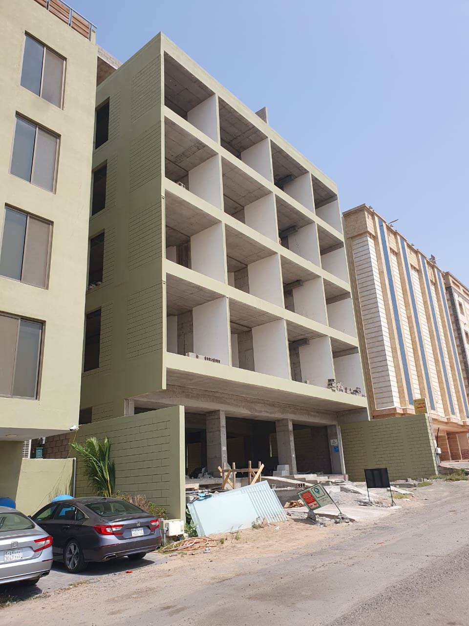 أعمال العظم والتشطيب في مبنى سكني مكون من دور ارضي واربعة طوابق متكررة وفيلا في الملحق